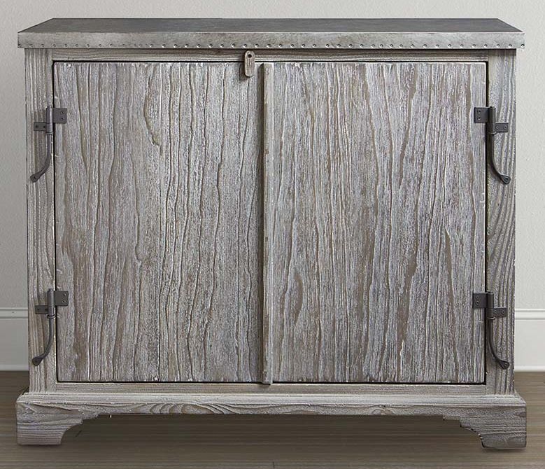 With its the tin top for serving wine, flat door with forged shutter hinges the cabinet is a stunning resemblance to the original 19th century wine tasting cabinets from the lush, mountainous and Mediterranean area or Northern Spain. Driftwood Oak finish with hand-tacked tin top.