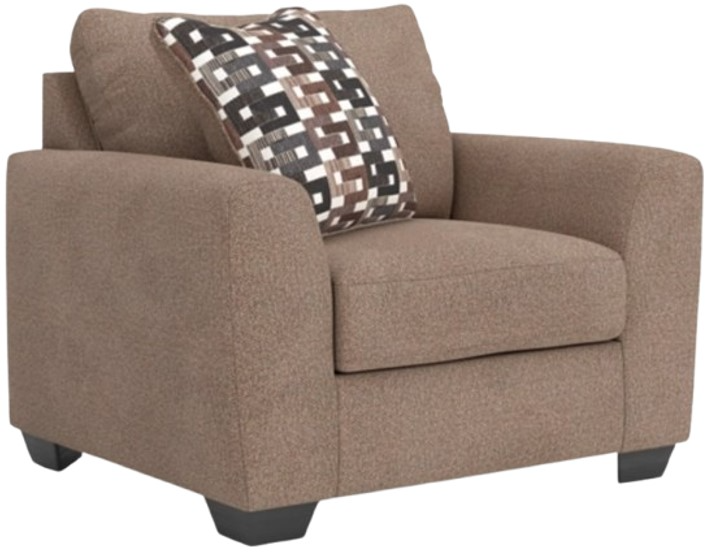Transitional and right on trend. This oversized chair's upholstery is a delightful change from the ordinary, with hints of soft brown giving the gray hue added depth. It’s punctuated with a chic accent pillow in an eye-catching, stylized stripe design.Read More