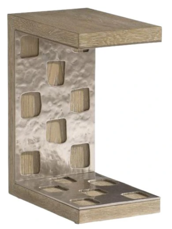 Cool California style finds its form in cast aluminum metal overlays on the Aventura accent table. Openwork freeform squares on the back and base of the C-shaped table reveal the wood frame in our Marcona finish.Read More