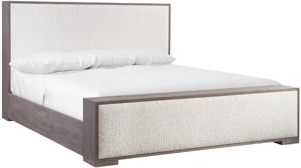 An understated tactile style is showcased in the Casa Paros panel bed. A deep wood frame in Playa finish surrounds inset upholstered panels on the headboard and footboard. The low footboard is deep enough to be used as a bench.Read More