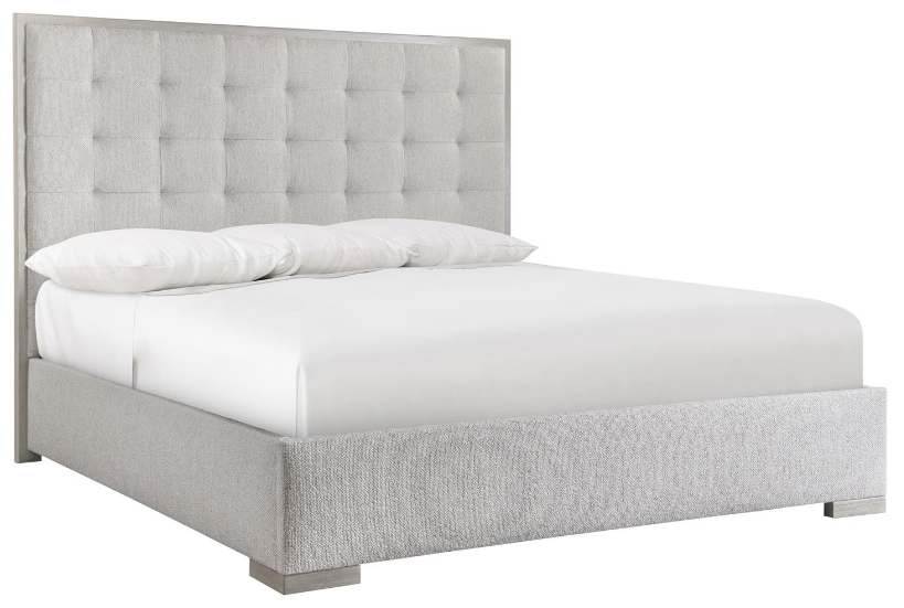 An upholstered headboard panel on the Cornelia bed adds a modern style to a traditional design with buttonless tufting. Upholstered side panels and footboard add texture that perfectly complements the wood frame and feet in Nebbia finish.Read More