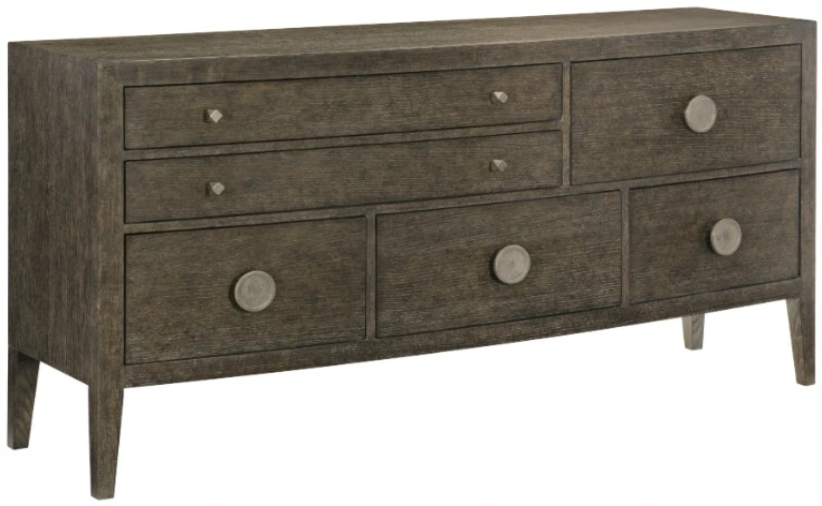 With its flawless artistry and understated elegance, Linea sets a new standard for rustic modern collections. Sleek lines, casual finishes and an asymmetrical form give the Linea sideboard its singular look. Wire-brushed oak veneers offer subtle textures, while a Cerused Charcoal finish partners elegantly with cast aluminum hardware in a Textured Graphite finish.Read More