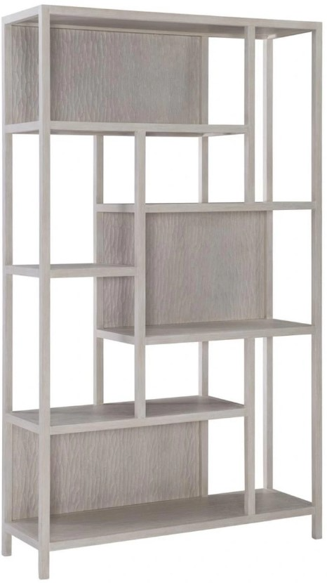 An artistic nod to mondrian is found in the geometric lines of the Solaria etagere. The wood frame showcases quartered white oak veneers in a weathered bone finish. The back is open, except for staggered cast resin panels in a chiseled pattern design. The result is an incredibly functional work of art.Read More