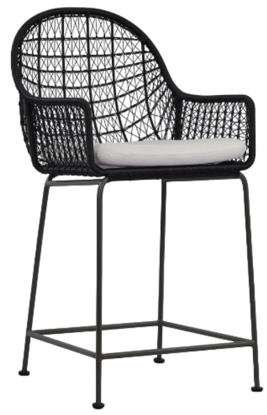 Clean, contemporary shaping and an updated weave transform all-weather wicker into something modern. This high-texture bar stool is supported by a contrasting black iron base, with a white seat cushion for comfort. Cover or store indoors during inclement weather and when not in use.Read More