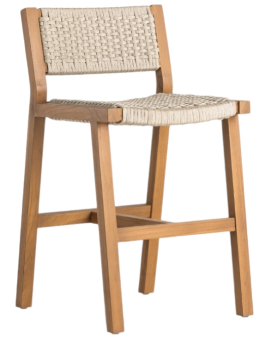 A textural take on outdoor styling, natural teak welcomes thick, handwoven rope seating in an inviting ivory. Safe for outdoor spaces. Cover or store indoors during inclement weather and when not in use.Read More