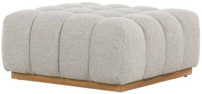 A modern take on mid-century Italian design, soft volume, and exaggerated proportions fuse for a sculpted look and playful feel. Atop a plinth-style teak base, outdoor-friendly seating features dramatic tufting for a padded sit, indoors and out. Ottoman to matching sectional. Cover or store inside during inclement weather and when not in use.Read More