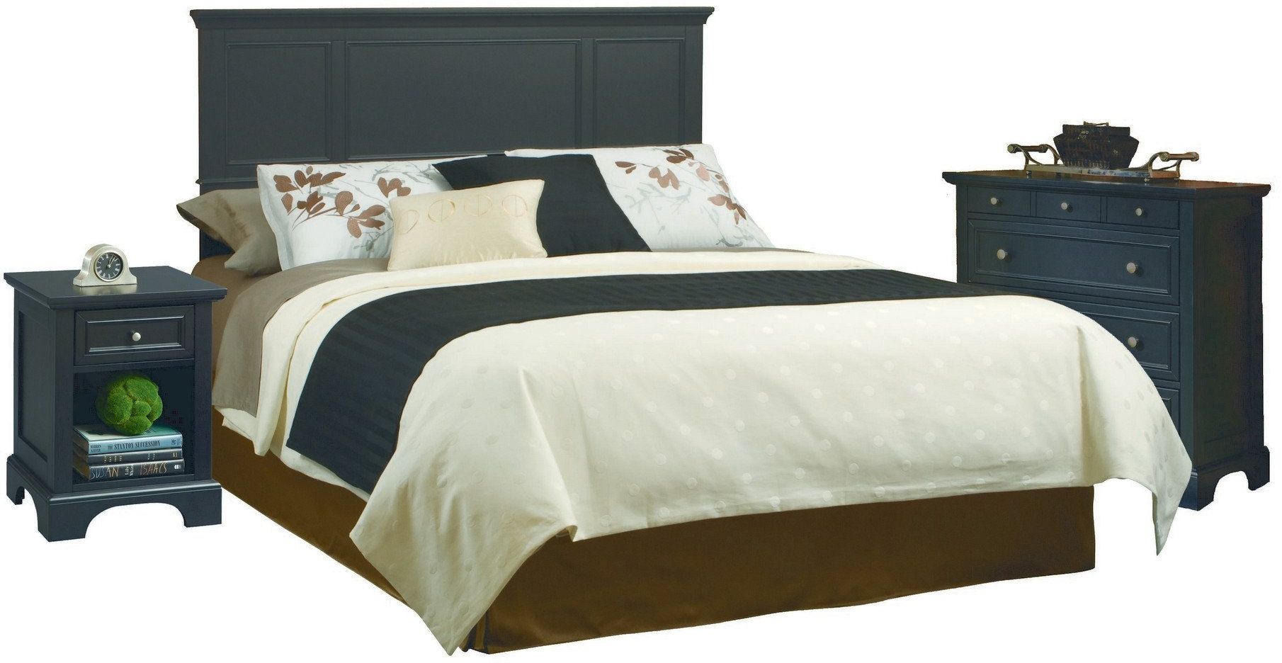 homestyles Ashford Queen headboard, Nightstand, and Chest are constructed of hardwoods and engineered wood with a rich black finish. Headboard features include raised panels on the headboard. Headboard will fit most Queen bed frames.Read More
