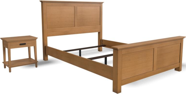 The headboard and footboard feature a timeless double panel design. While the nightstand offers quick access to all your bedside items with a drawer and open storage below. The open back allows easy access to cords for charging your phone, tablet, and more. Stained in a light oak finish, this craftsman-style bedroom set will fit right in with your existing furniture, or help you create a new look.