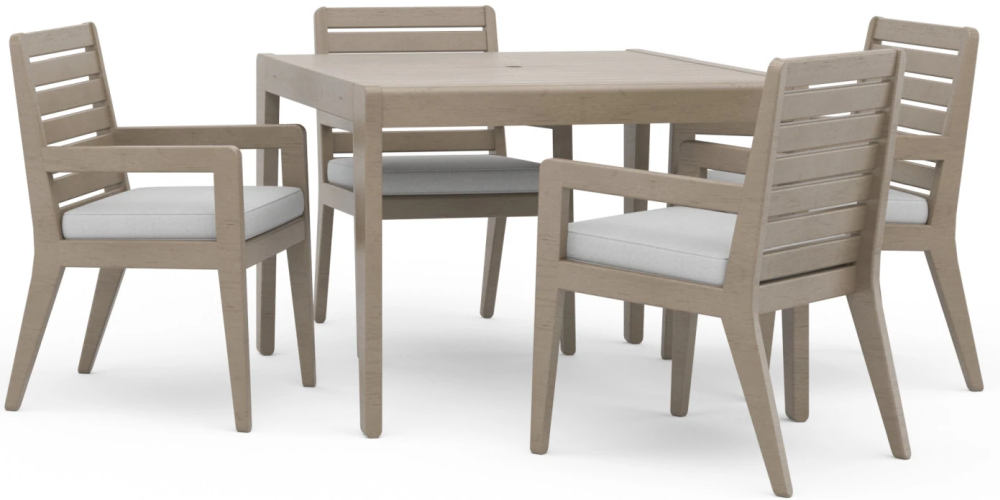 Any outdoor space becomes a desirable destination for entertaining or relaxing with this Homestyles Sustain 5-Piece Outdoor Set. This square dining table with four armchairs brings up to four people together to enjoy an oasis under the sun. The water-resistant cushions and gray acacia wood with a UV-resistant finish deliver solid performance year after year.Read More