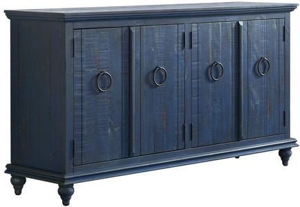 The Martin Svensson Garden District media console offers sturdy support for TVs and media equipment. It features cabinets and shelves for organized storage of electronics, games, and accessories. The blue finish adds a distinctive touch while keeping entertainment essentials neatly arranged and accessible.Read More