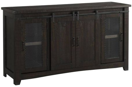 This beautiful TV console is made from roughhewn and distressed solid pine and pine veneers. Comfortable and casual farmhouse look is spot on for today's consumer. The unique barn doors roll smoothly along iron forged-style bands.Read More