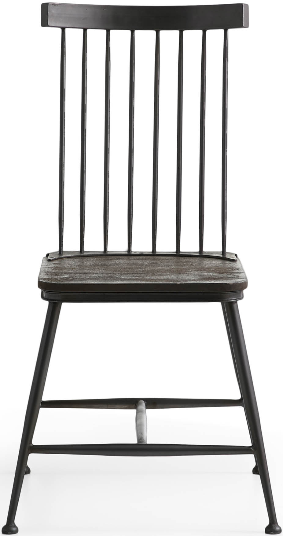 Cradled wood seat and slender spindles are inspired by Windsor chairs