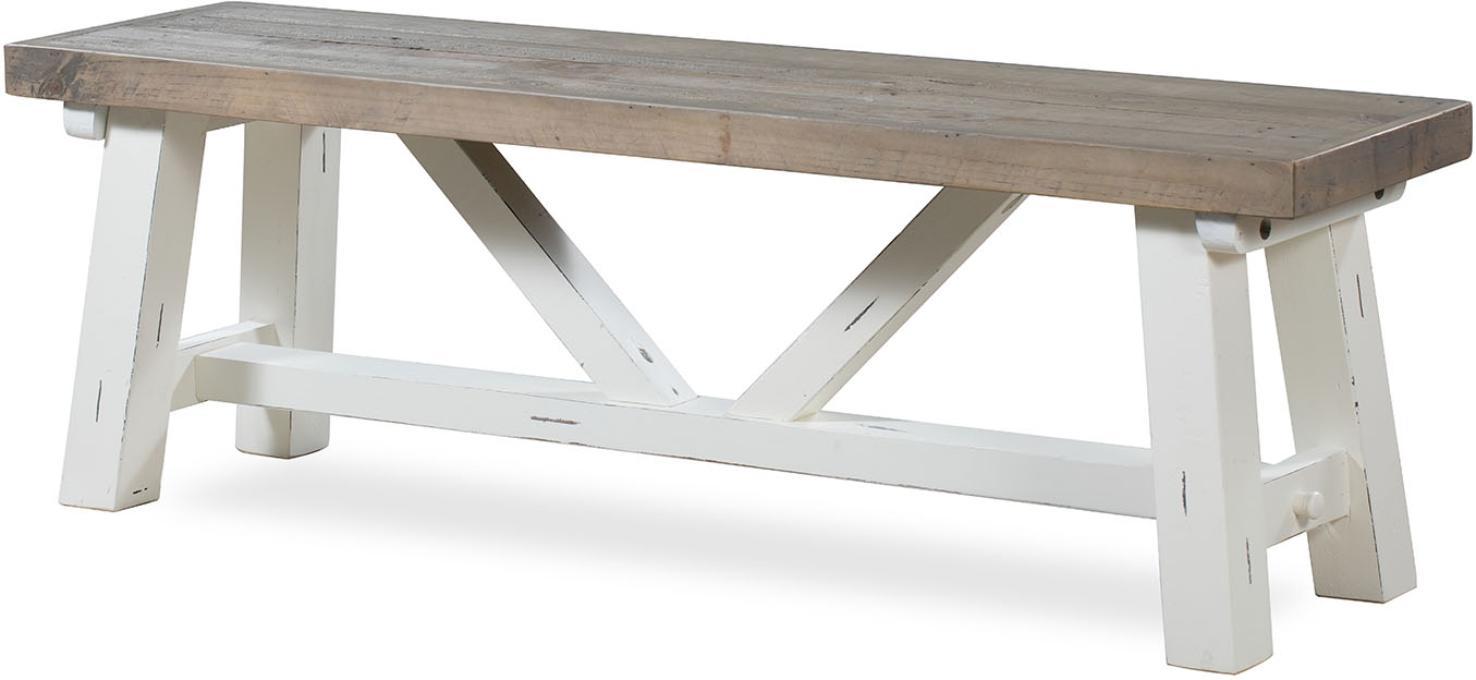 The Salt Flat™ Chester Distressed White Dining Bench is a farmhouse style bench with a distressed white-wood base and a natural wood bench top.Read More