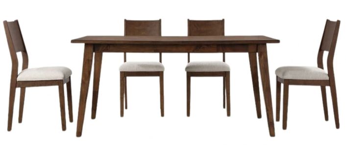 Casually sophisticated style arrives in the dining room with the Canton 5-piece 72" side chair dining set. Influenced by mid-century modern design and ready to seat up to six, this set showcases a beautiful butcher block top layup and tapered solid wood legs, exuding both elegance and warmth.Read More