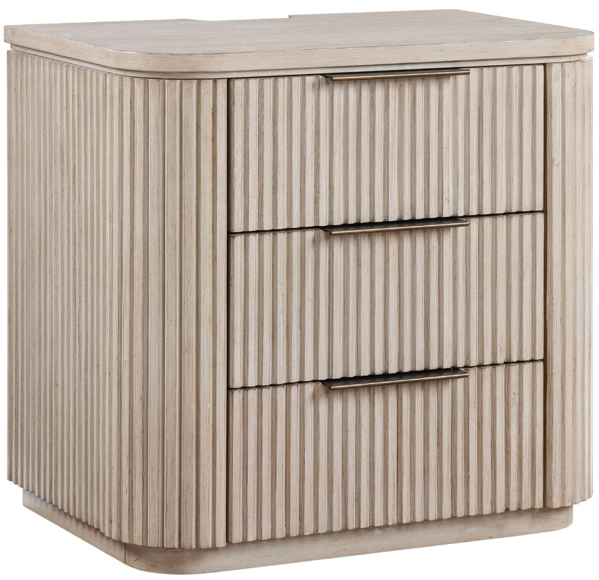 The Henry nightstand is a sturdy and stylish bedside companion, combining functionality with modern elegance. Crafted with oak veneers in a light tan finish, it features reeded surfaces, rounded corners, and a sturdy plinth base. Three drawers offer ample storage, including a felt-lined top drawer to protect valuables.Read More