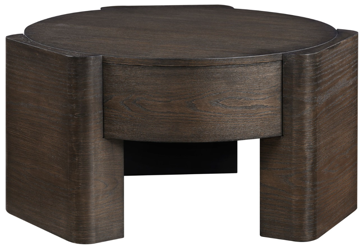 The Salina 32.5" Round Coffee Table combines modern design with functional elegance. Crafted from oak veneers and solid Asian hardwoods in a rich espresso finish, it features a smooth flush-edge top, soft rounded shape, and six hidden casters for effortless mobility and versatility in any contemporary living space.Read More