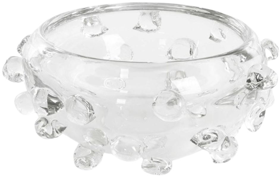 Enhance your home decor with our thick clear glass bowl, adorned with organic glass spheres accenting the exterior. This stunning piece combines modern sophistication with artistic flair, making it the perfect addition to any room.Read More